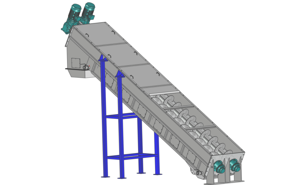是利用螺旋軸的旋轉和傾斜角度,將洗干凈的料片,從帶有脫水篩板的螺旋底部推到出料口,脫水后的料片進(jìn)入下一道工序,水和雜物通過(guò)篩板過(guò)濾下來(lái)匯集到脫水螺旋下端的集水槽里,排至下一工序進(jìn)行處理。